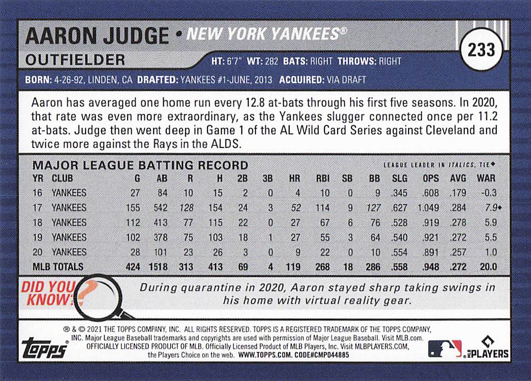 2021 Topps Big League Aaron Judge #233