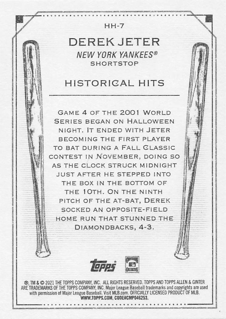 2021 Topps Allen & Ginter Historical Hits Derek Jeter #HH-7