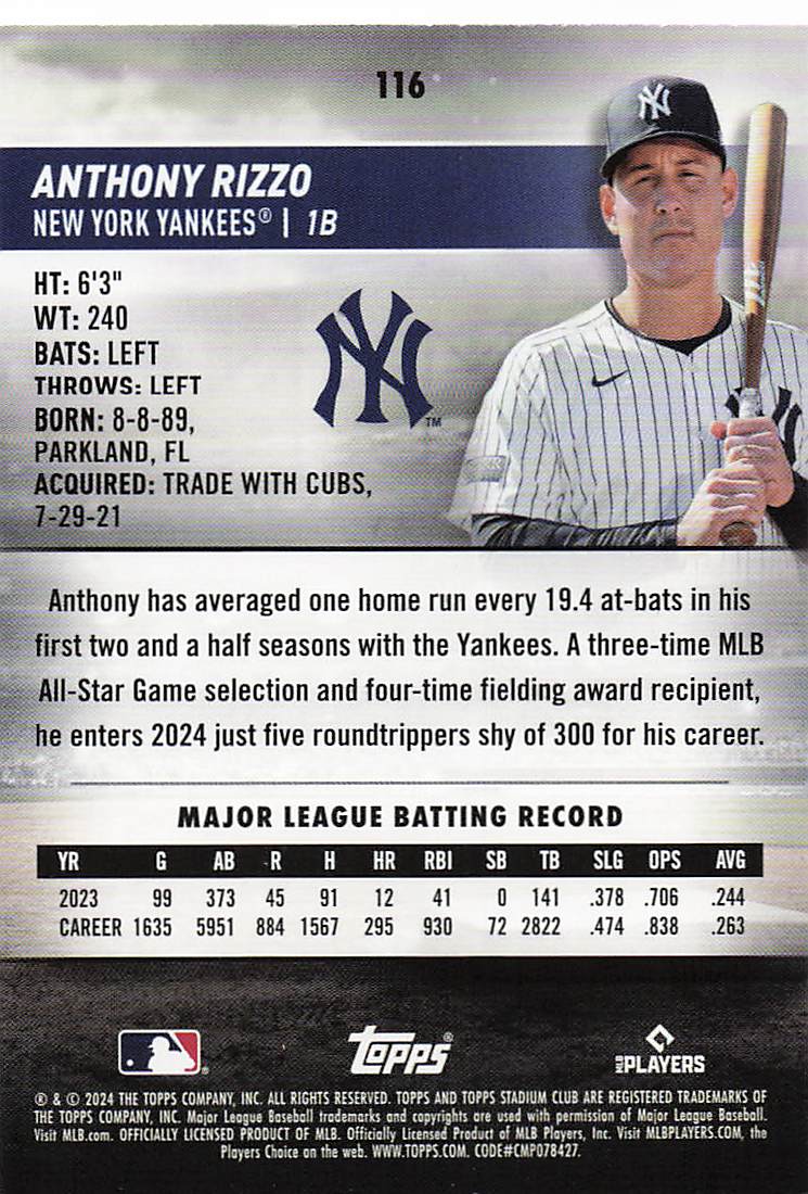 2024 Topps Stadium Club Anthony Rizzo #116