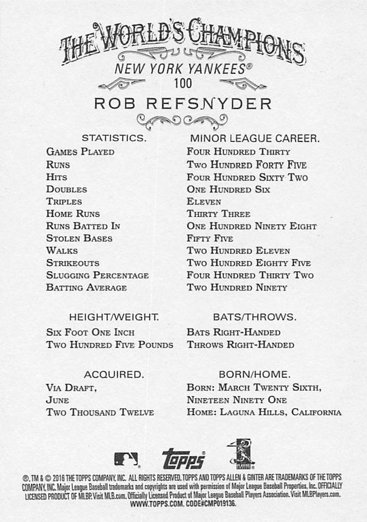 2016 Topps Allen & Ginter Rob Refsnyder #100 RC