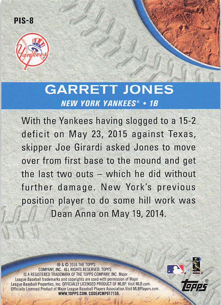 2016 Topps Pressed into Service Garrett Jones #PIS-8