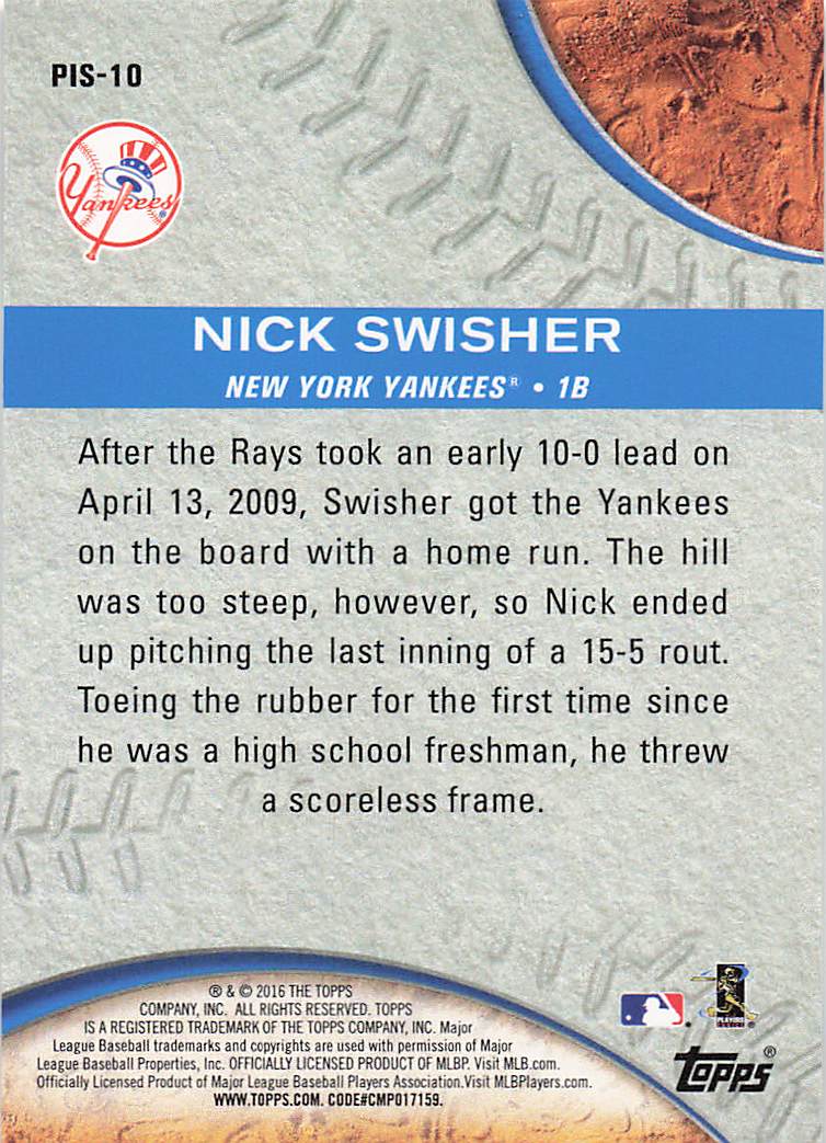 2016 Topps Pressed into Service Nick Swisher #PIS-10