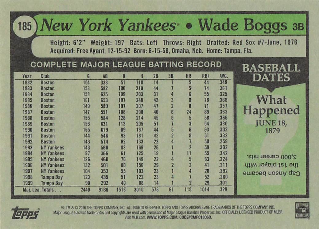 2016 Topps Archives Wade Boggs #185