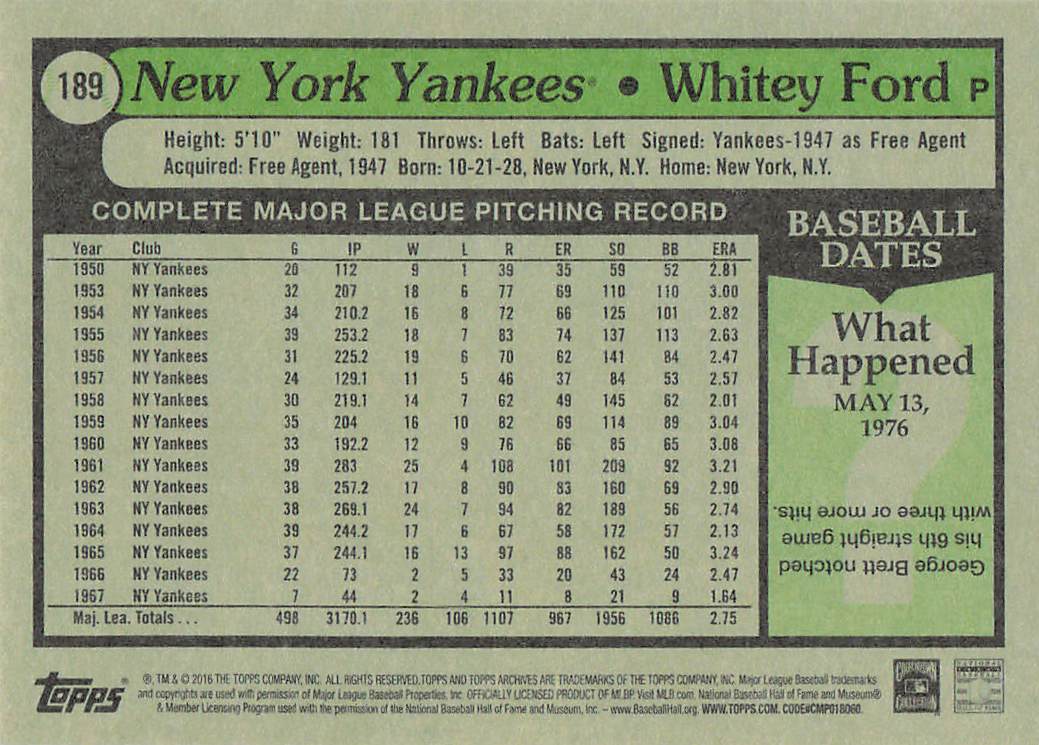 2016 Topps Archives Whitey Ford #189