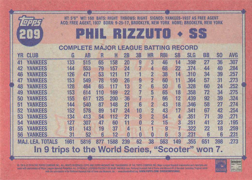 2016 Topps Archives Phil Rizzuto #209
