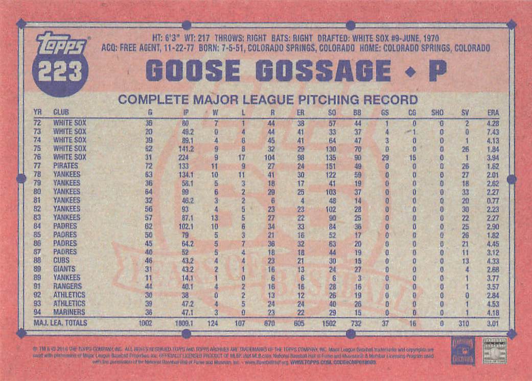 2016 Topps Archives Goose Gossage #223