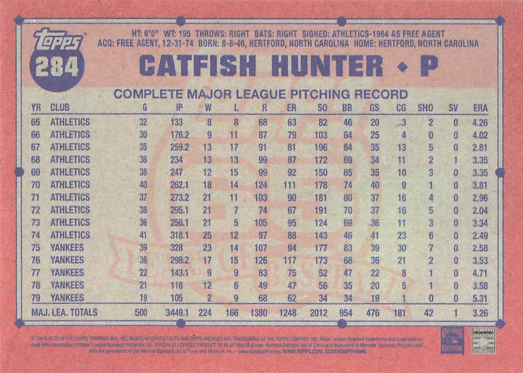 2016 Topps Archives Catfish Hunter #284