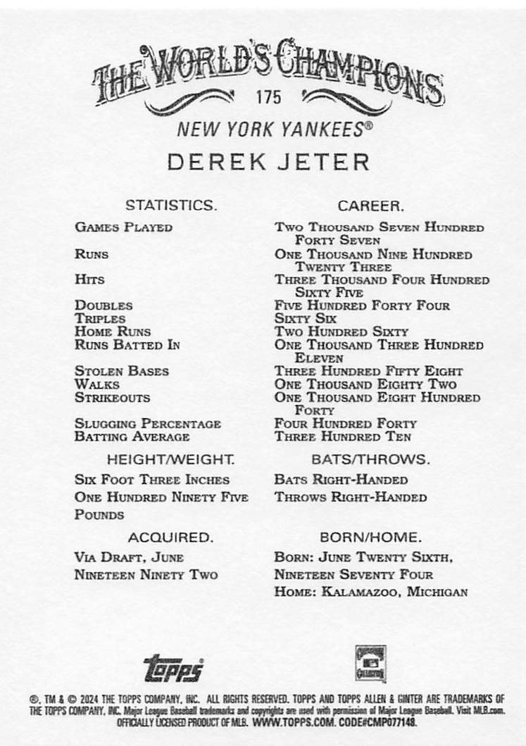2024 Topps Allen & Ginter Derek Jeter #175
