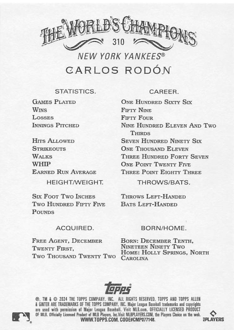 2024 Topps Allen & Ginter Carlos Rodón #310 SP