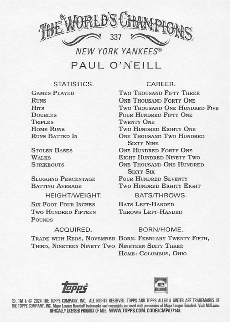 2024 Topps Allen & Ginter Paul O'Neill #337 SP