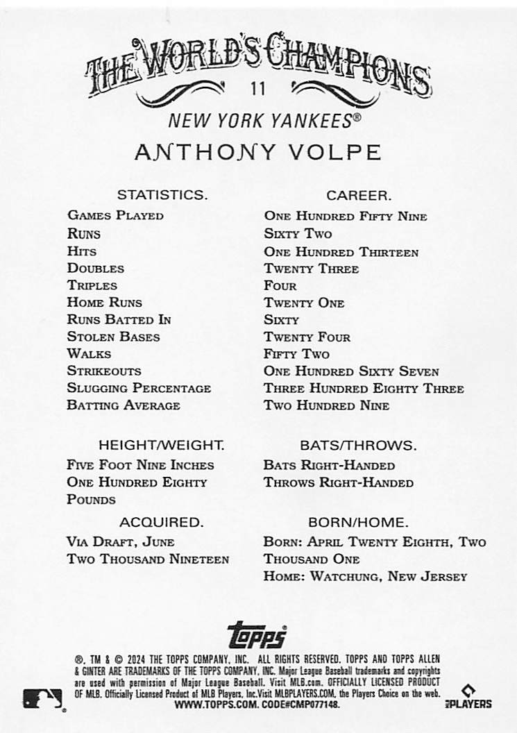 2024 Topps Allen & Ginter Silver Portrait Anthony Volpe #11