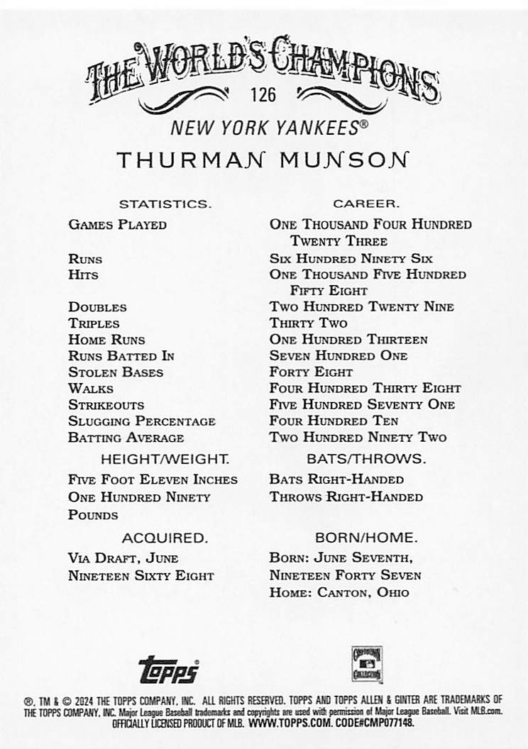 2024 Topps Allen & Ginter Silver Portrait Thurman Munson #126