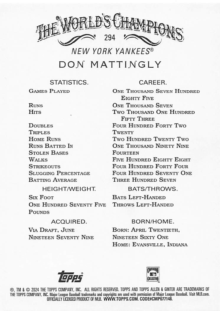 2024 Topps Allen & Ginter Silver Portrait Don Mattingly #294