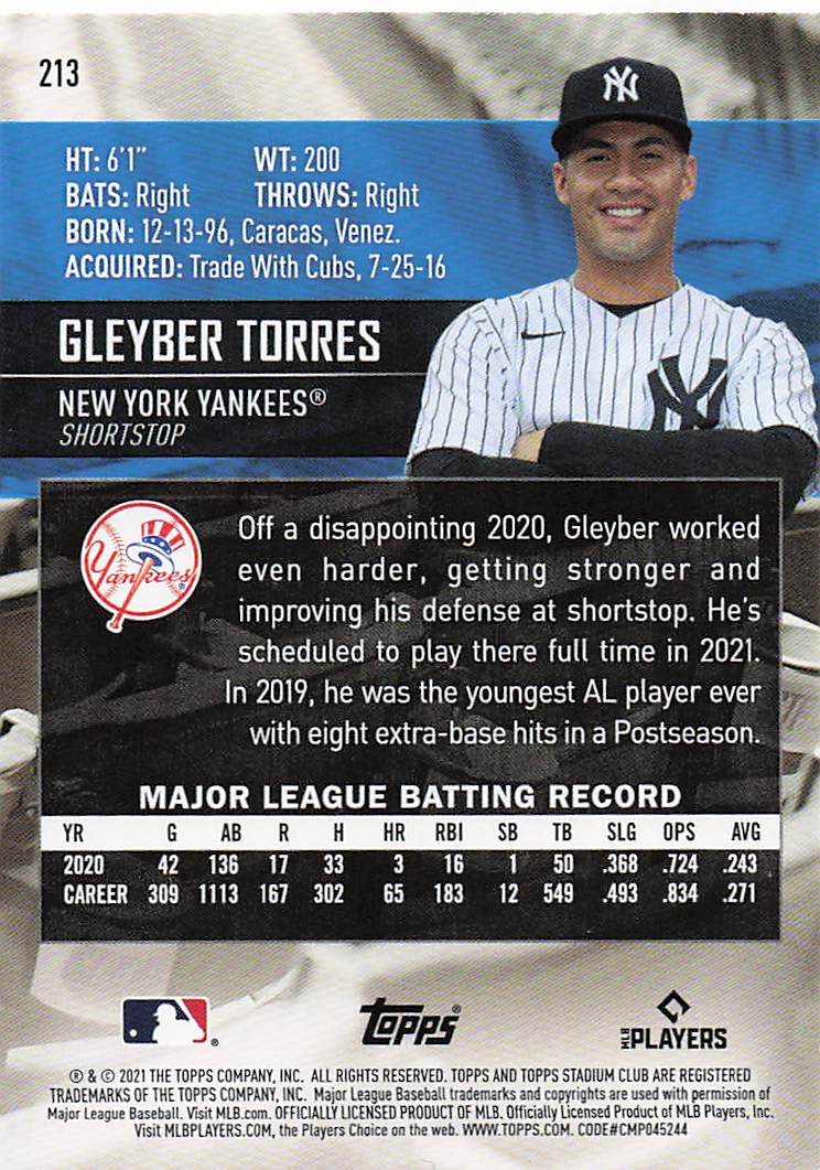 2021 Topps Stadium Club Gleyber Torres #213