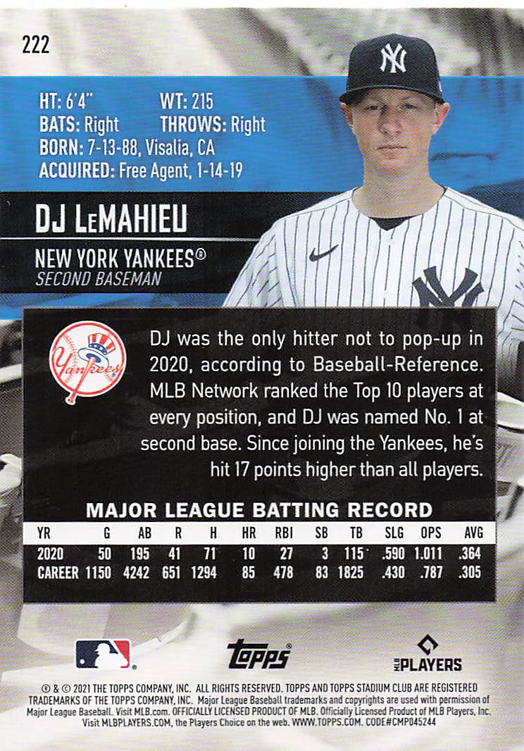 2021 Topps Stadium Club DJ LeMahieu #222