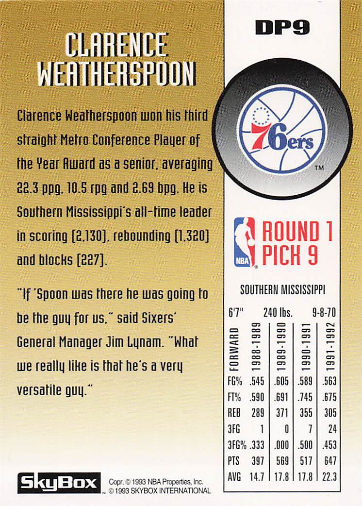 1992-93 Skybox Draft Picks Clarence Weatherspoon #DP9