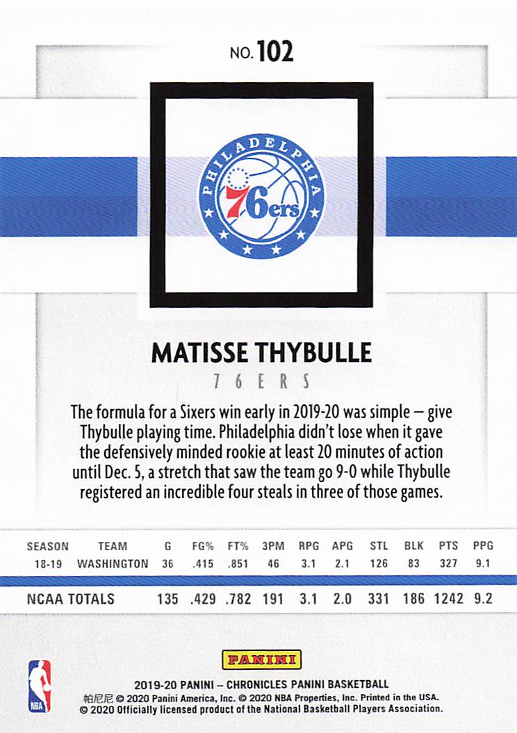 2019-20 Panini Chronicles Panini Matisse Thybulle #102 RC