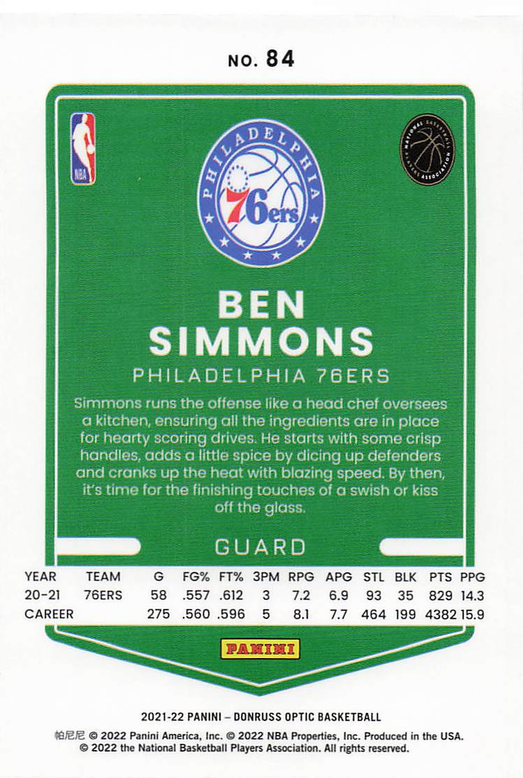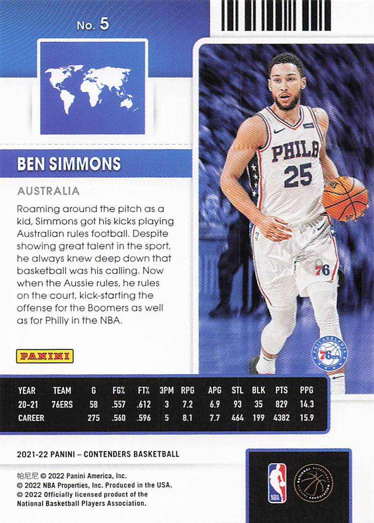 2021-22 Panini Contenders International Ticket Ben Simmons #5