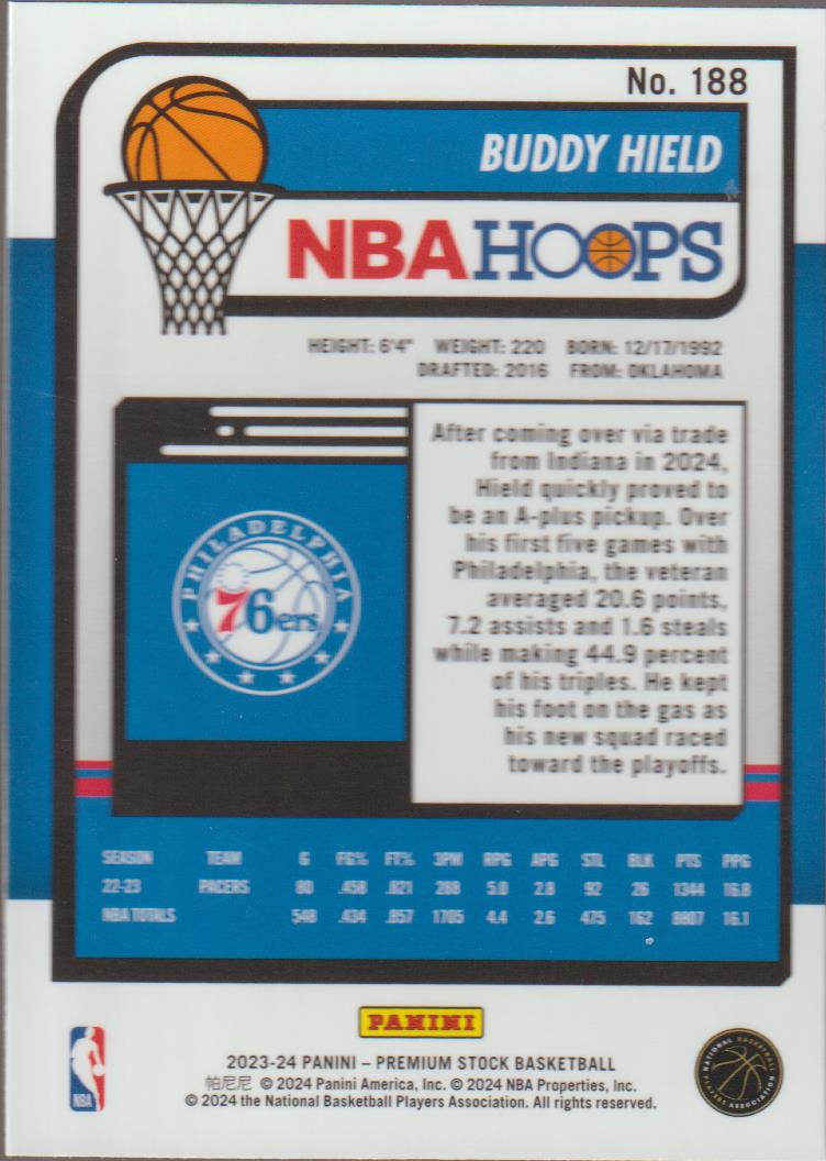 2023-24 Panini NBA Hoops Premium Stock Buddy Hield #188