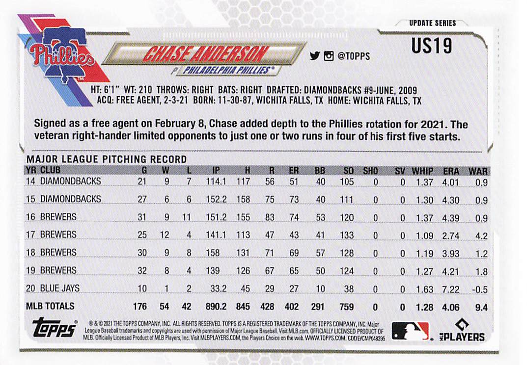 2021 Topps Update Chase Anderson #US19