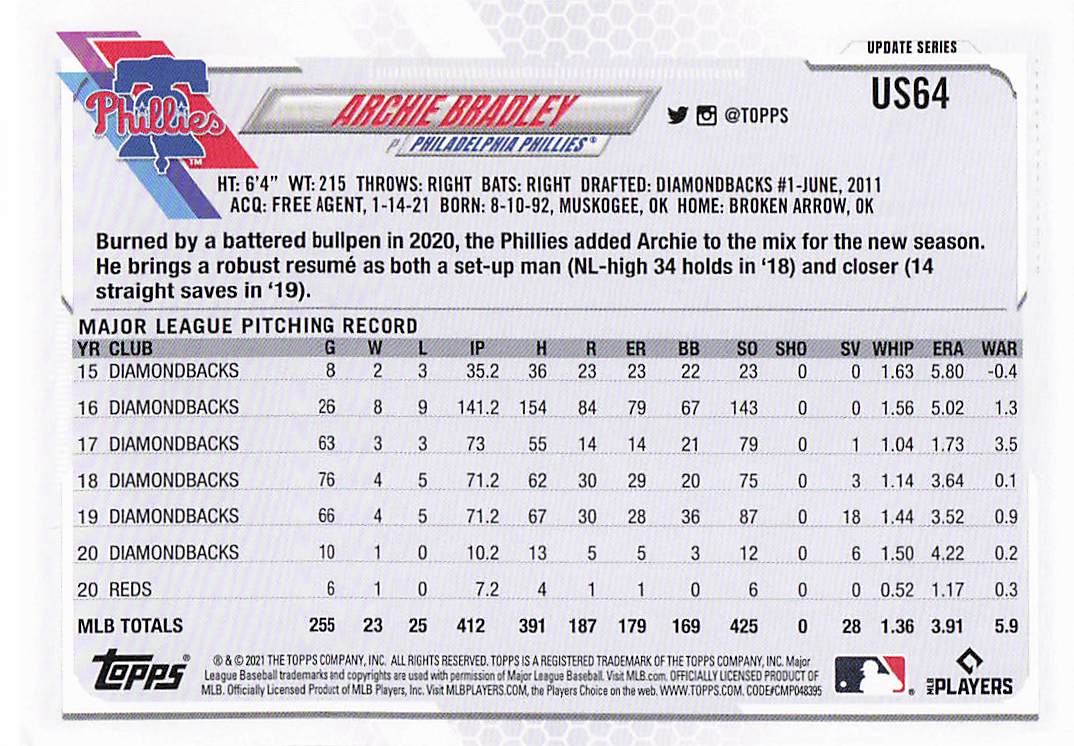 2021 Topps Update Archie Bradley #US64