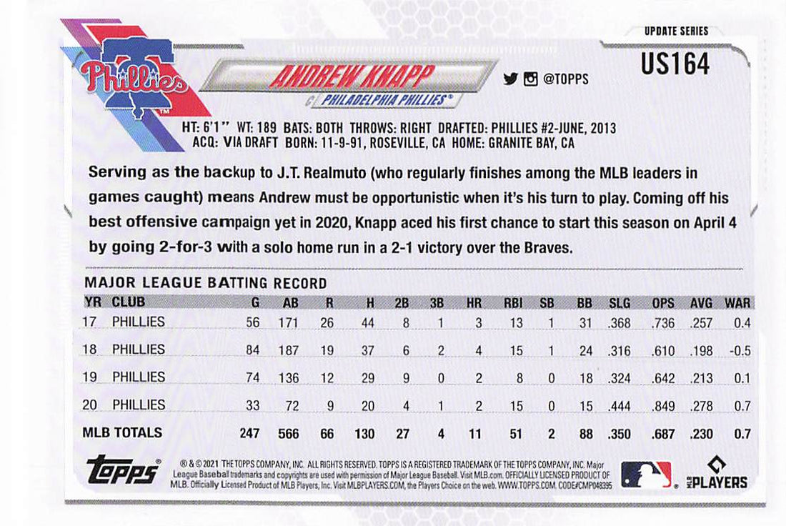 2021 Topps Update Andrew Knapp #US164