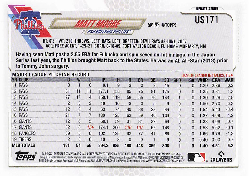 2021 Topps Update Matt Moore #US171