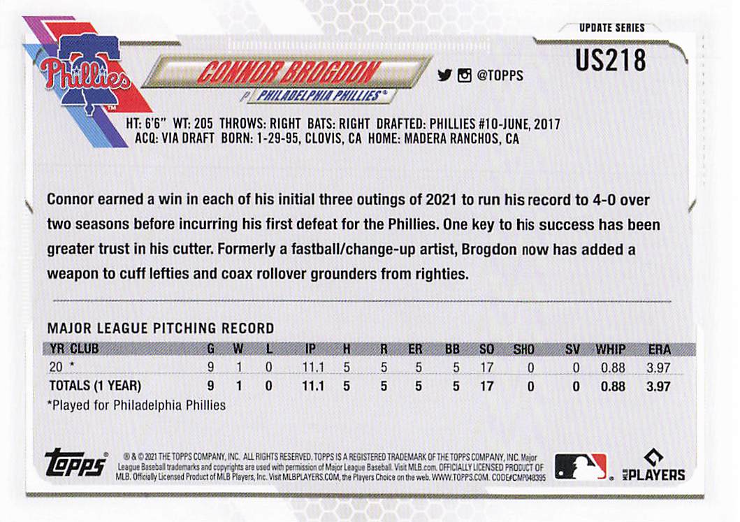 2021 Topps Update Connor Brogdon #US218 RC
