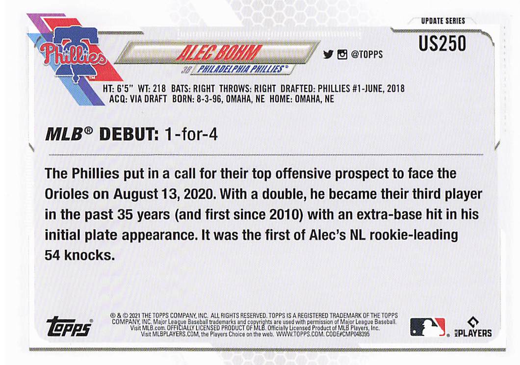 2021 Topps Update Alec Bohm #US250