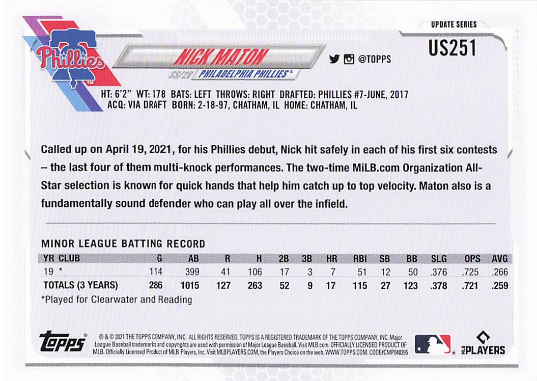 2021 Topps Update Nick Maton #US251 RC