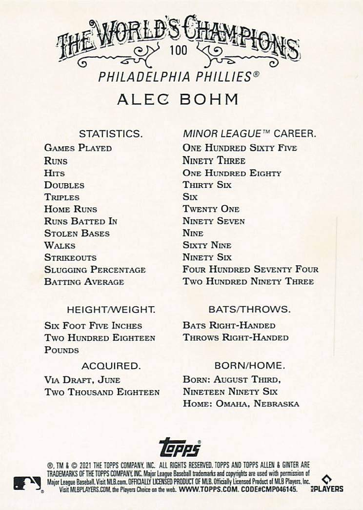 2021 Topps Allen & Ginter Silver Portrait Alec Bohm #100 RC