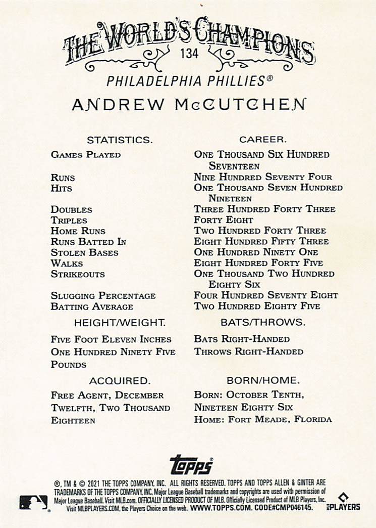 2021 Topps Allen & Ginter Silver Portrait Andrew McCutchen #134