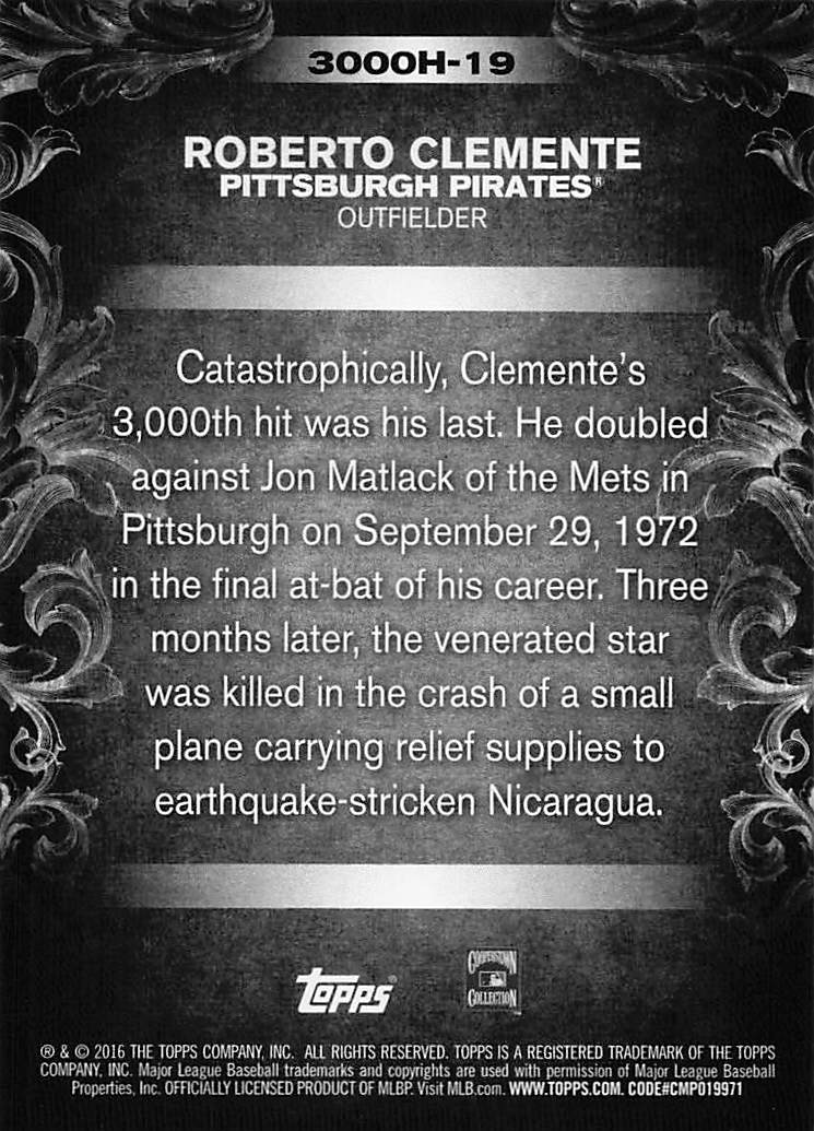 2016 Topps Update 3000 Hit Club Roberto Clemente #3000H-19