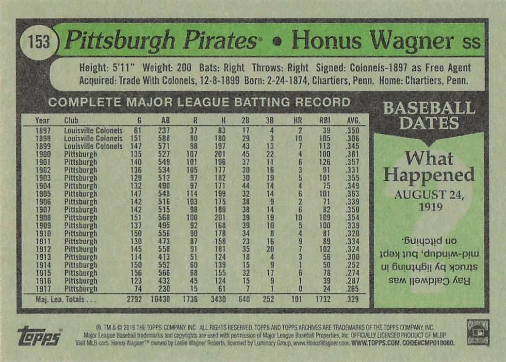 2016 Topps Archives Honus Wagner #153