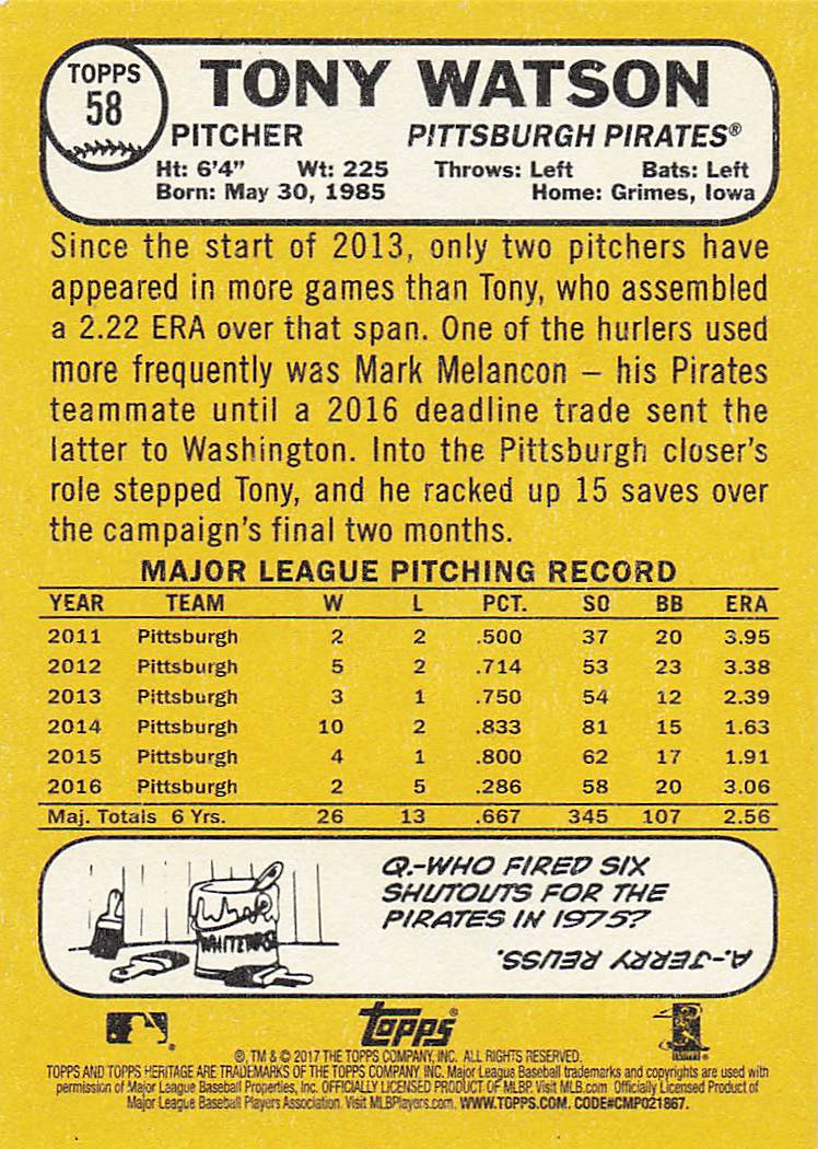 2017 Topps Heritage Tony Watson #58