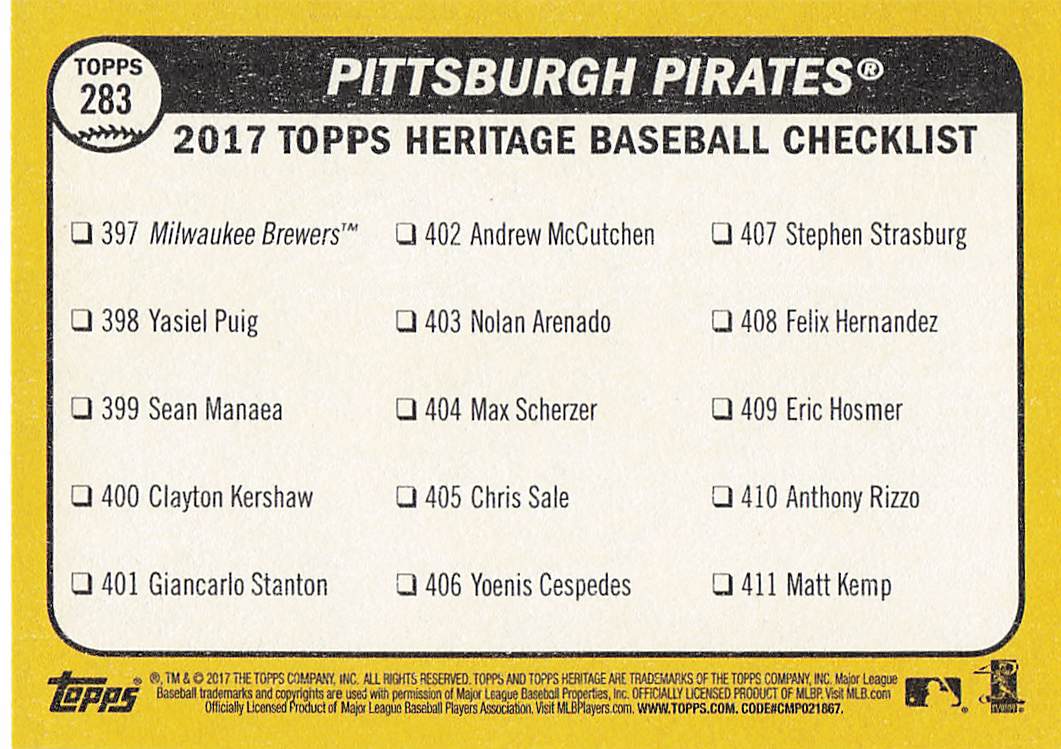 2017 Topps Heritage Pittsburgh Pirates #283