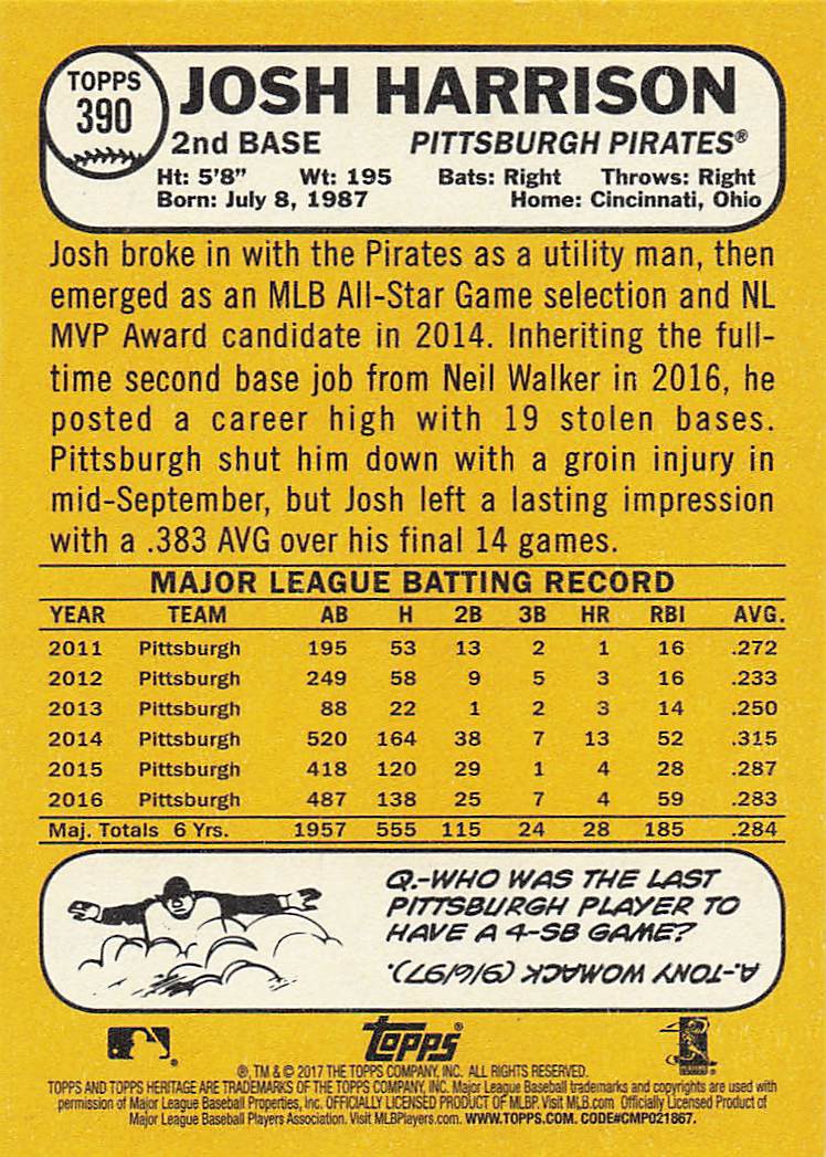 2017 Topps Heritage Josh Harrison #390