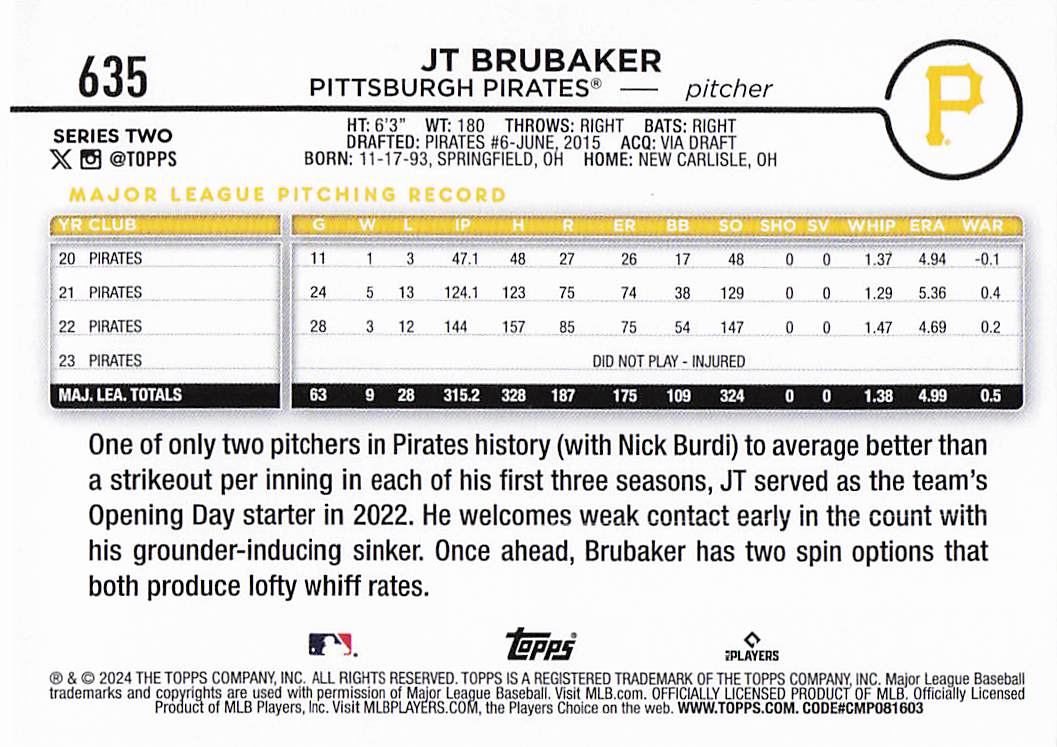 2024 Topps Baseball Series 2 Holiday J.T. Brubaker #635
