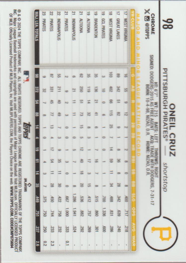 2024 Topps Chrome Oneil Cruz #98