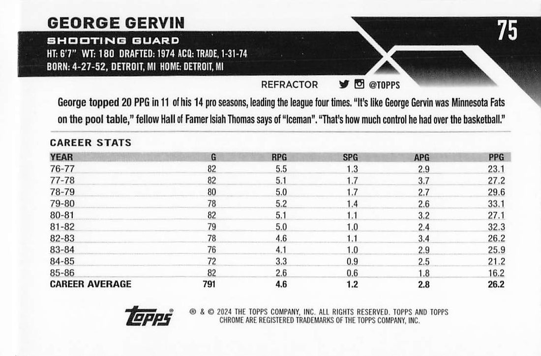 2023-24 Topps Chrome Basketball Refractor George Gervin #75