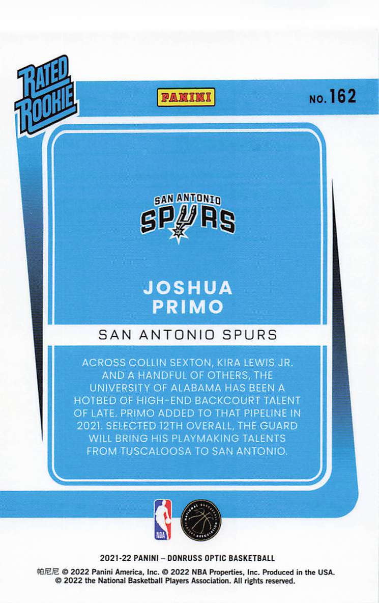 2021-22 Donruss Optic Joshua Primo #162 RC
