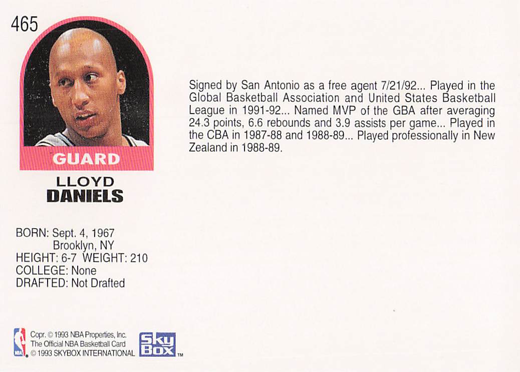 1992-93 NBA Hoops Lloyd Daniels #465 RC