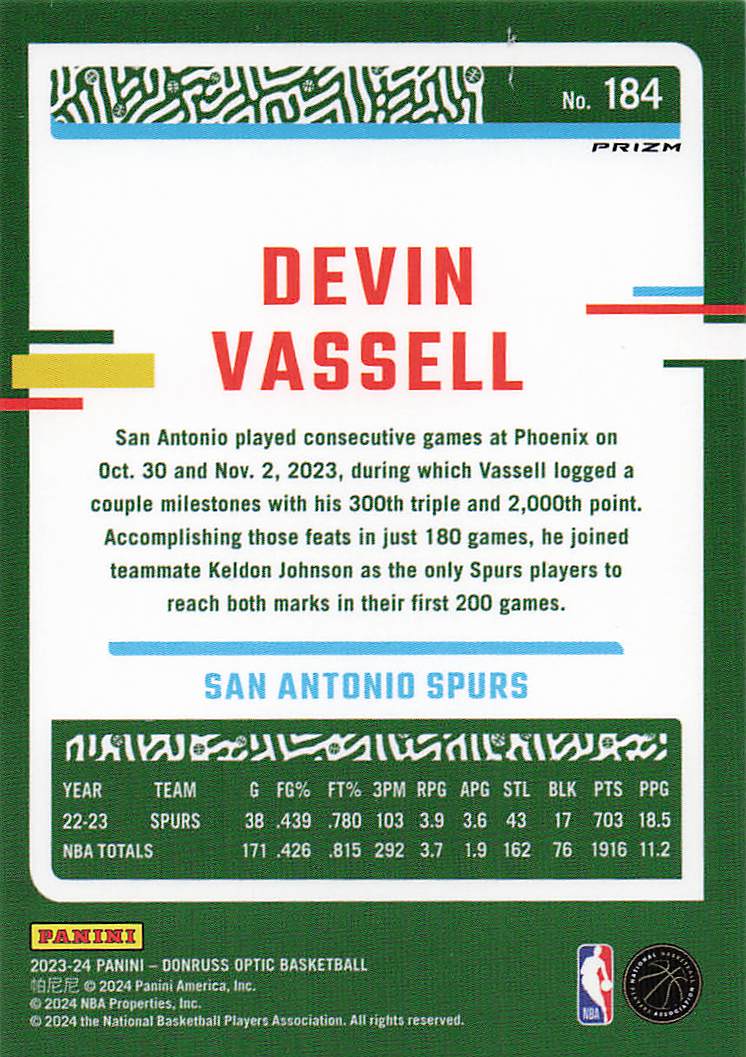 2023-24 Donruss Optic Basketball Pink Hyper Prizm Devin Vassell #184