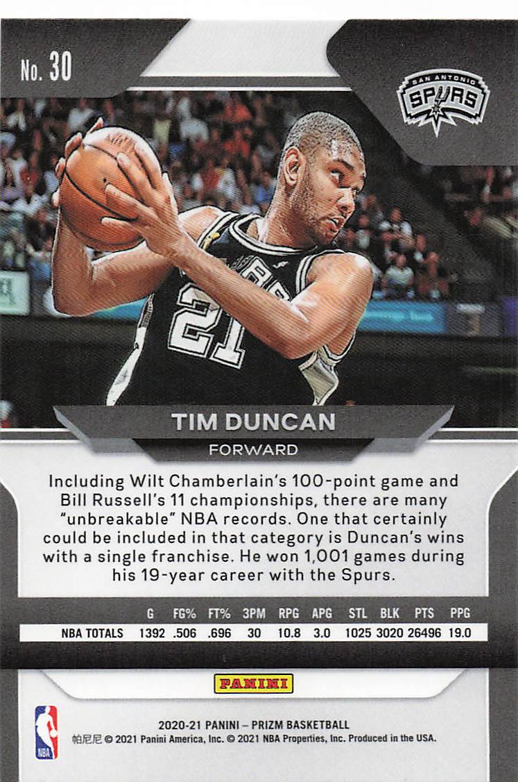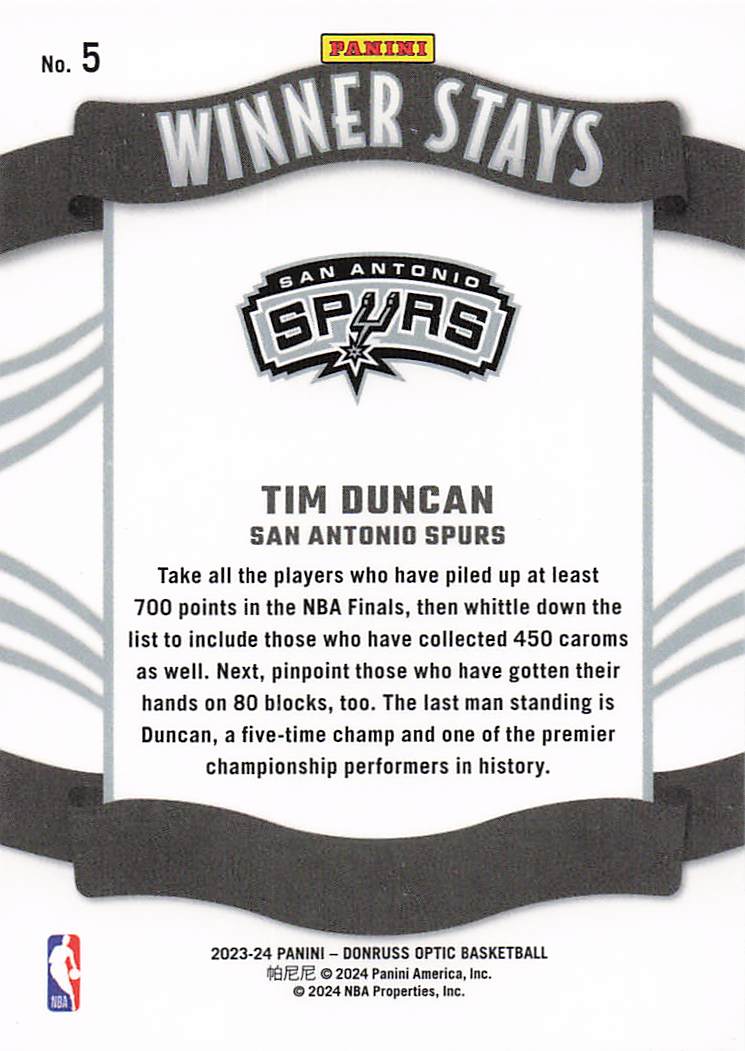 2023-24 Donruss Optic Basketball Winner Stays Tim Duncan #5