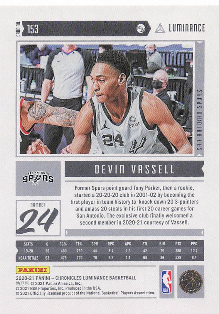 2020-21 Panini Chronicles Luminance Devin Vassell #153 RC