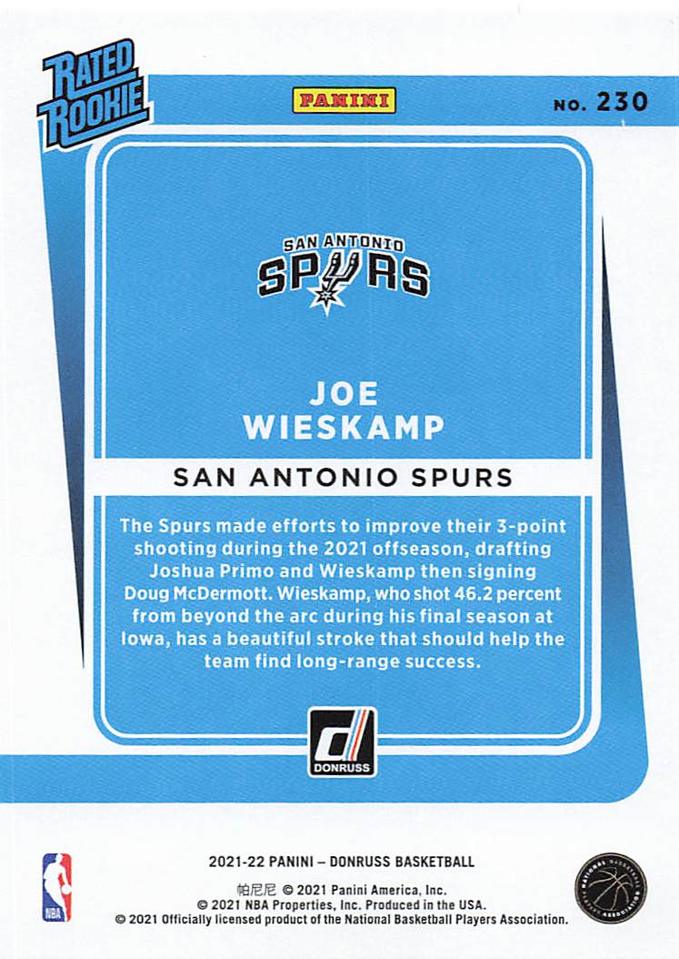 2021-22 Panini Donruss Joe Wiskamp #230 RC