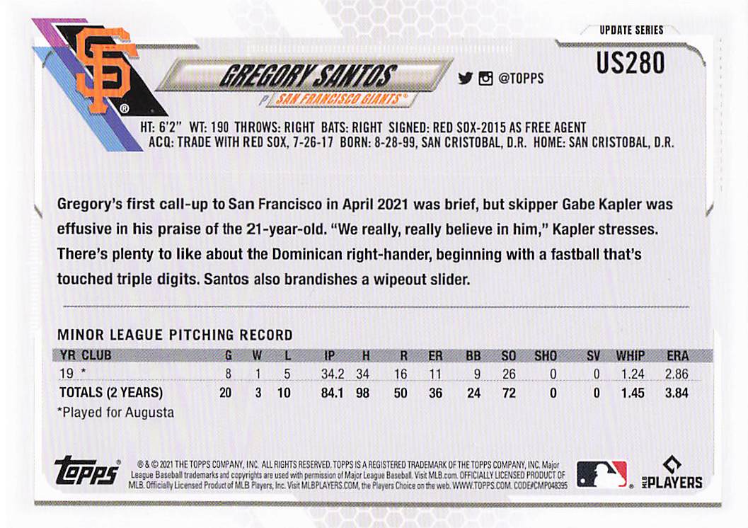2021 Topps Update Gregory Santos #US280 RC
