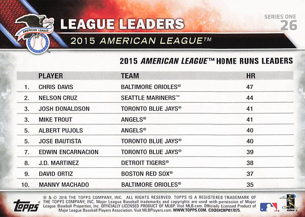 2016 Topps AL League Leaders Chris Davis - Nelson Cruz - Mike Trout #26