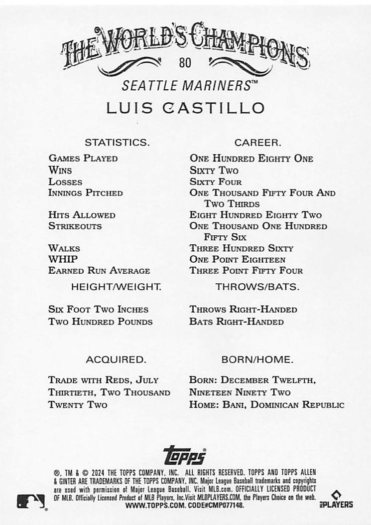 2024 Topps Allen & Ginter Silver Portrait Luis Castillo #80