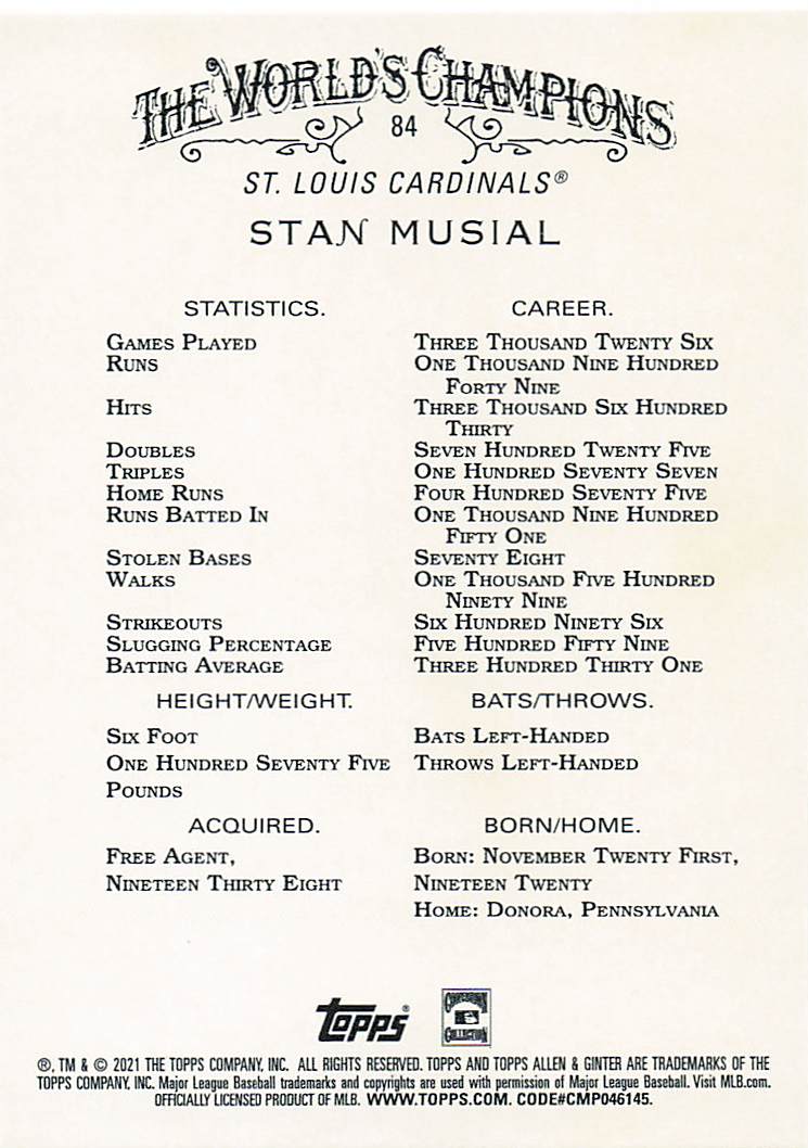 2021 Topps Allen & Ginter Silver Portrait Stan Musial #84